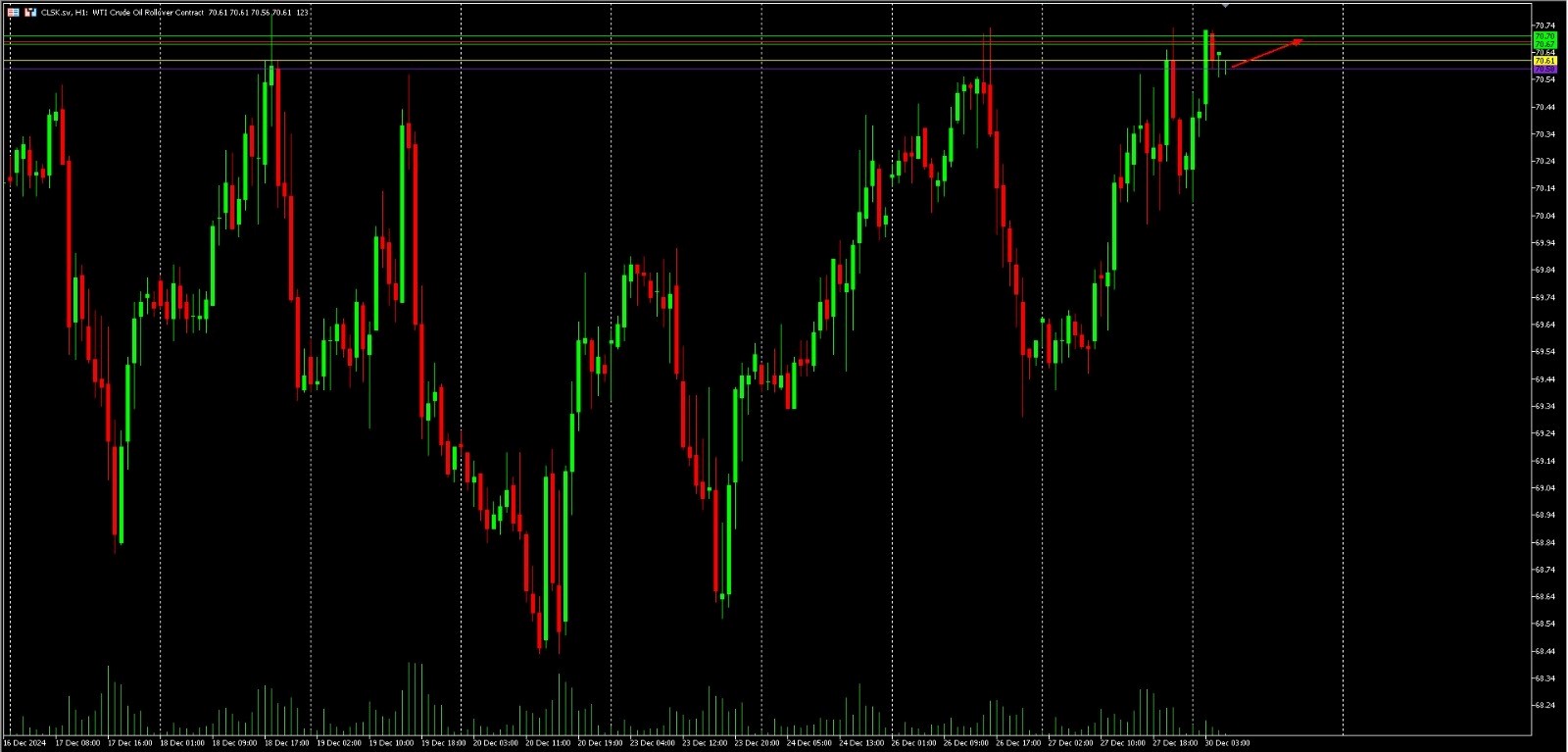 Pergerakan harga Minyak Mentah dapat berbeda dengan yang lain pada hari Jumat karena aset-aset lain sepenuhnya memasuki jeda pasar Natal. Dengan masih adanya beberapa data penting yang harus dicerna, para pedagang Minyak harus tetap waspada karena akan ada peluang yang sangat terbatas untuk berdagang. Diprakirakan akan melihat beberapa pergerakan singkat yang volatil, meskipun rally yang mungkin terjadi tidak memiliki fundamental yang kuat untuk berlanjut hingga memasuki 2025.