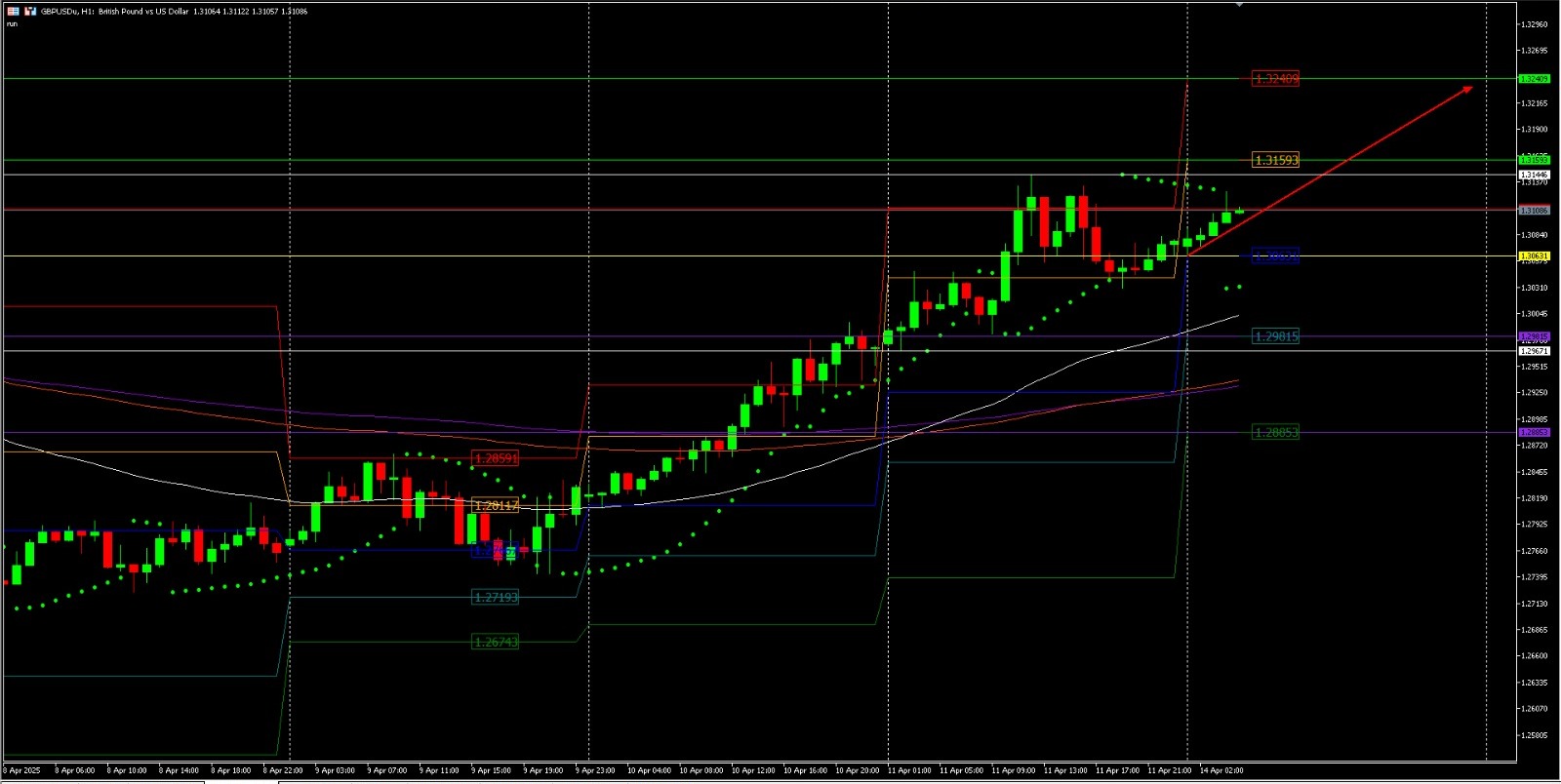 Pasangan GBP/USD stabil mendekati 1,3100 di awal pekan, mendapat dorongan dari melemahnya Dolar AS. Bias jual terhadap USD masih kuat karena kekhawatiran resesi ekonomi AS meningkat. Penundaan tarif 90 hari oleh Trump tidak cukup menenangkan pasar global.