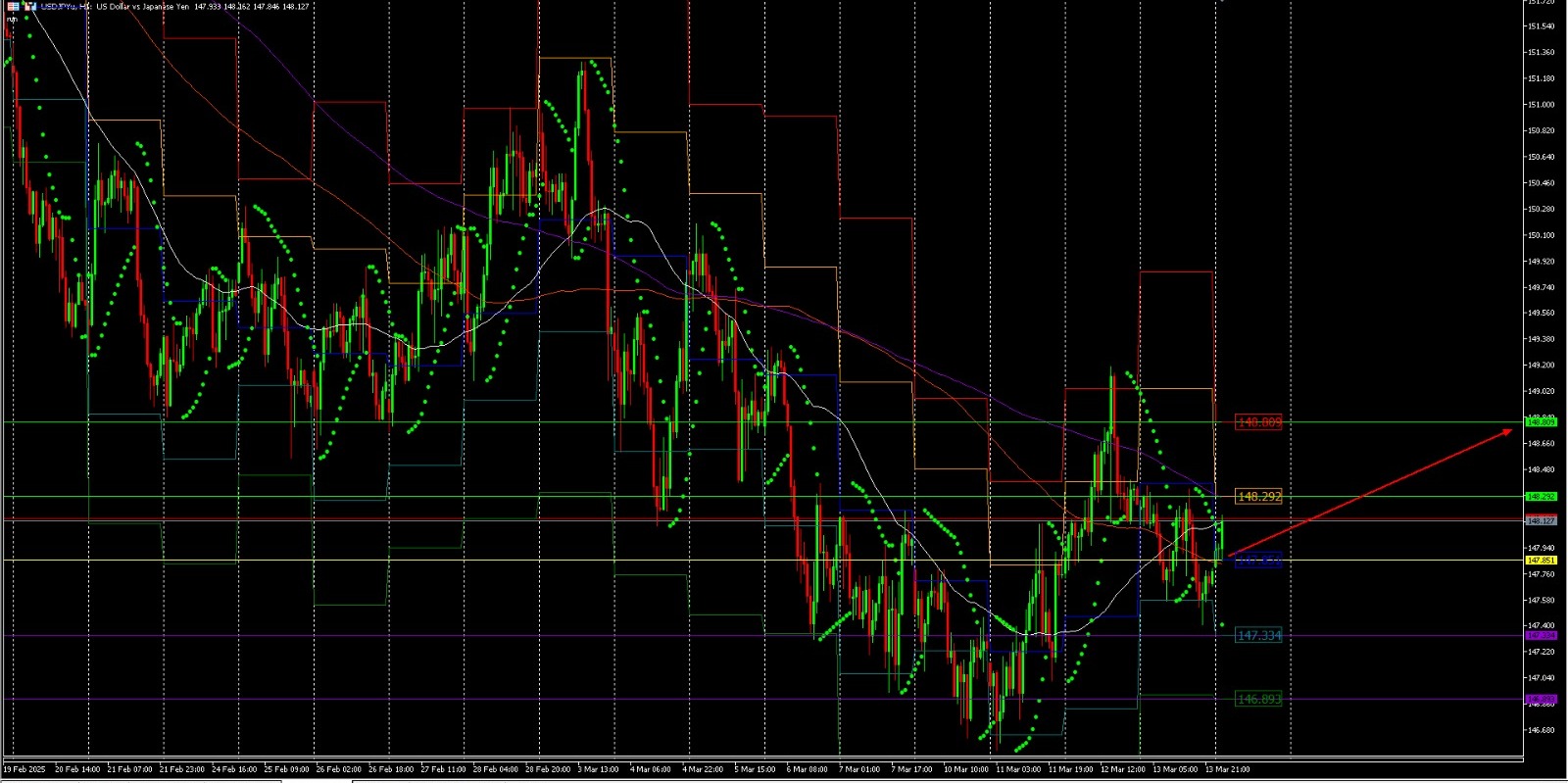 Gagal bertahan di 148,00 bisa mendorong USD/JPY turun ke swing low 146,54 pada 11 Maret.