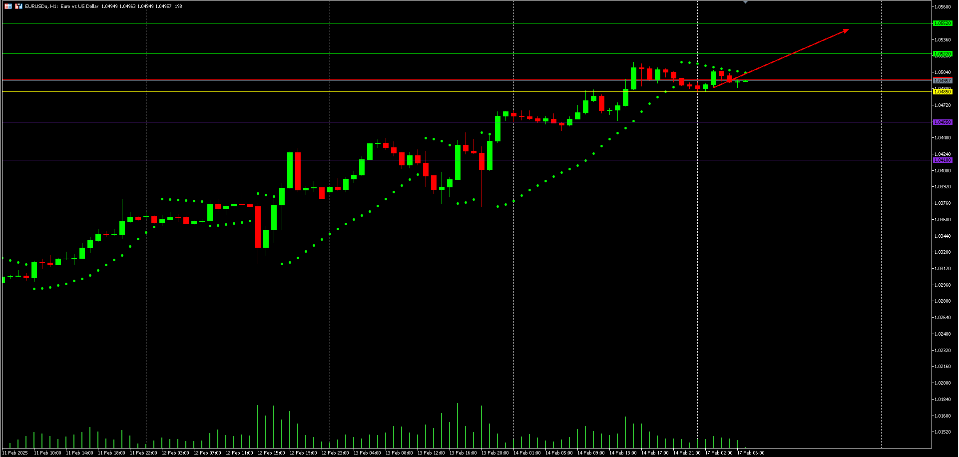 Namun, penting untuk memantau volume yang meningkat saat harga naik, karena hal ini memberikan konfirmasi bahwa tren bullish memiliki validitas yang lebih tinggi. Jika harga turun dan menembus level support 1.0495, ada kemungkinan terjadinya pullback atau koreksi lebih dalam. Untuk strategi entry, posisi buy sebaiknya dipertimbangkan jika harga stabil di atas level 1.0560, dengan konfirmasi lebih lanjut sebelum membuka posisi.
