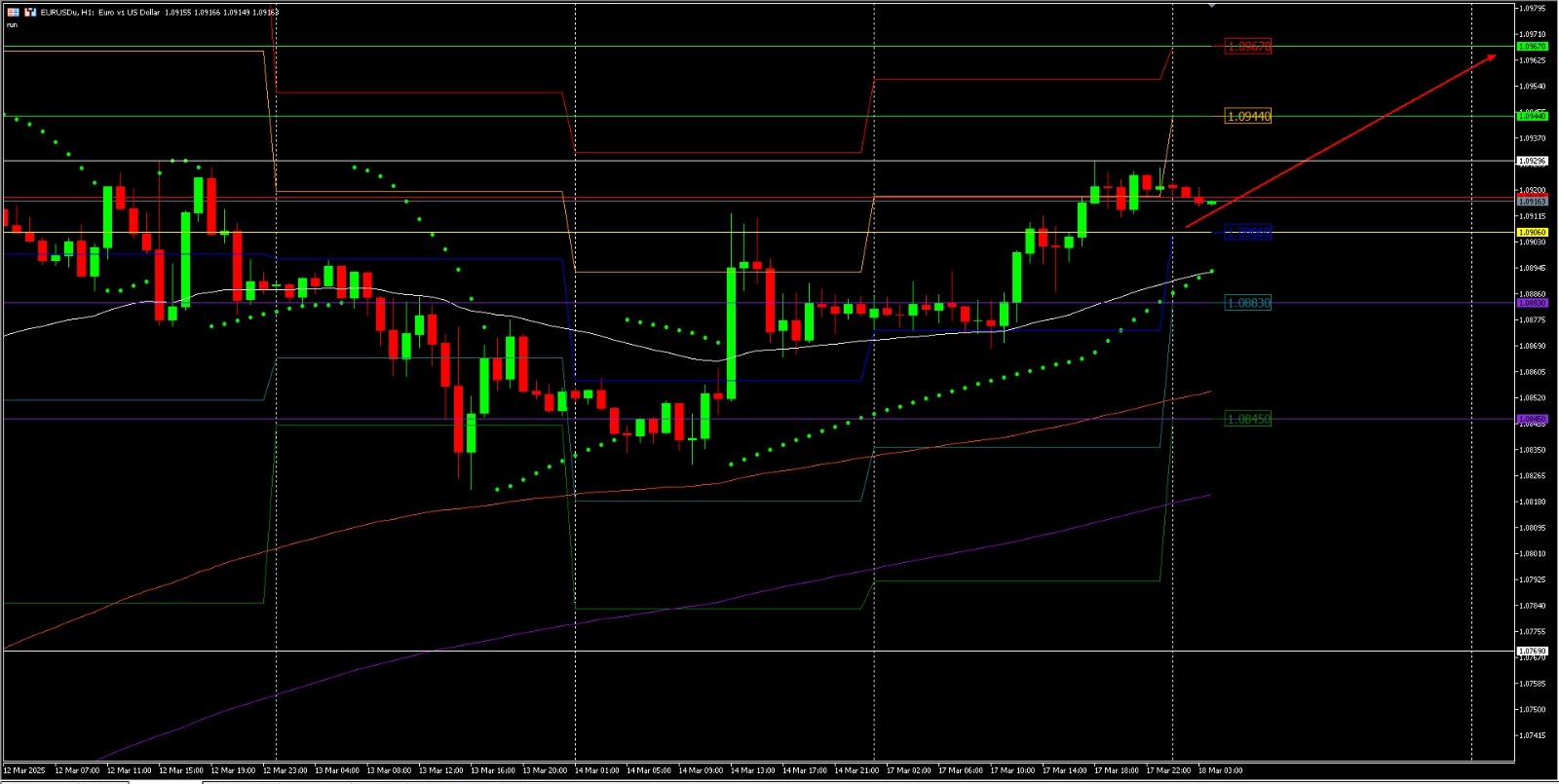 Partai Hijau Jerman mendukung dana infrastruktur €500 miliar dan pelonggaran aturan pinjaman. Kebijakan ini berpeluang lolos dari parlemen Jerman pekan ini, menopang sentimen terhadap Euro. Selain itu, data Penjualan Ritel AS lebih lemah dari ekspektasi, menambah kekhawatiran perlambatan ekonomi. Penjualan Ritel AS Februari naik 0,2% MoM, di bawah ekspektasi 0,7%, menunjukkan pelemahan konsumsi. Pelemahan Greenback akibat data ekonomi ini dapat mendukung EUR/USD dalam jangka pendek.