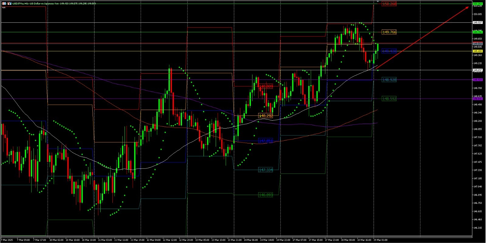- Support: 147,41 (terendah 13 Maret), 147,00, 146,54.